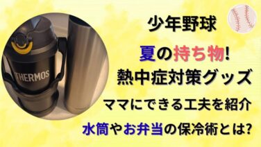 少年野球やスポ少の熱中症対策に!水筒の選び方や量の目安、保冷バッグの中身、お弁当の工夫など、夏場のスポーツに必要な暑さ対策グッズと実用的なアイデアを経験をもとに紹介します。
