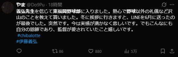 伊藤義弘監督を恩師と呼ぶ声も