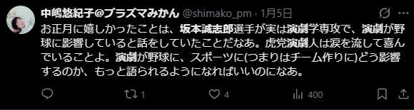 坂本誠志郎選手が演劇学専攻だったことについて、SNSの反応をまとめました。
