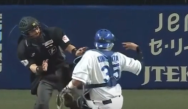 白井球審が誤審多いと言われる理由6つ目は、木下拓哉捕手と接触したことです。
